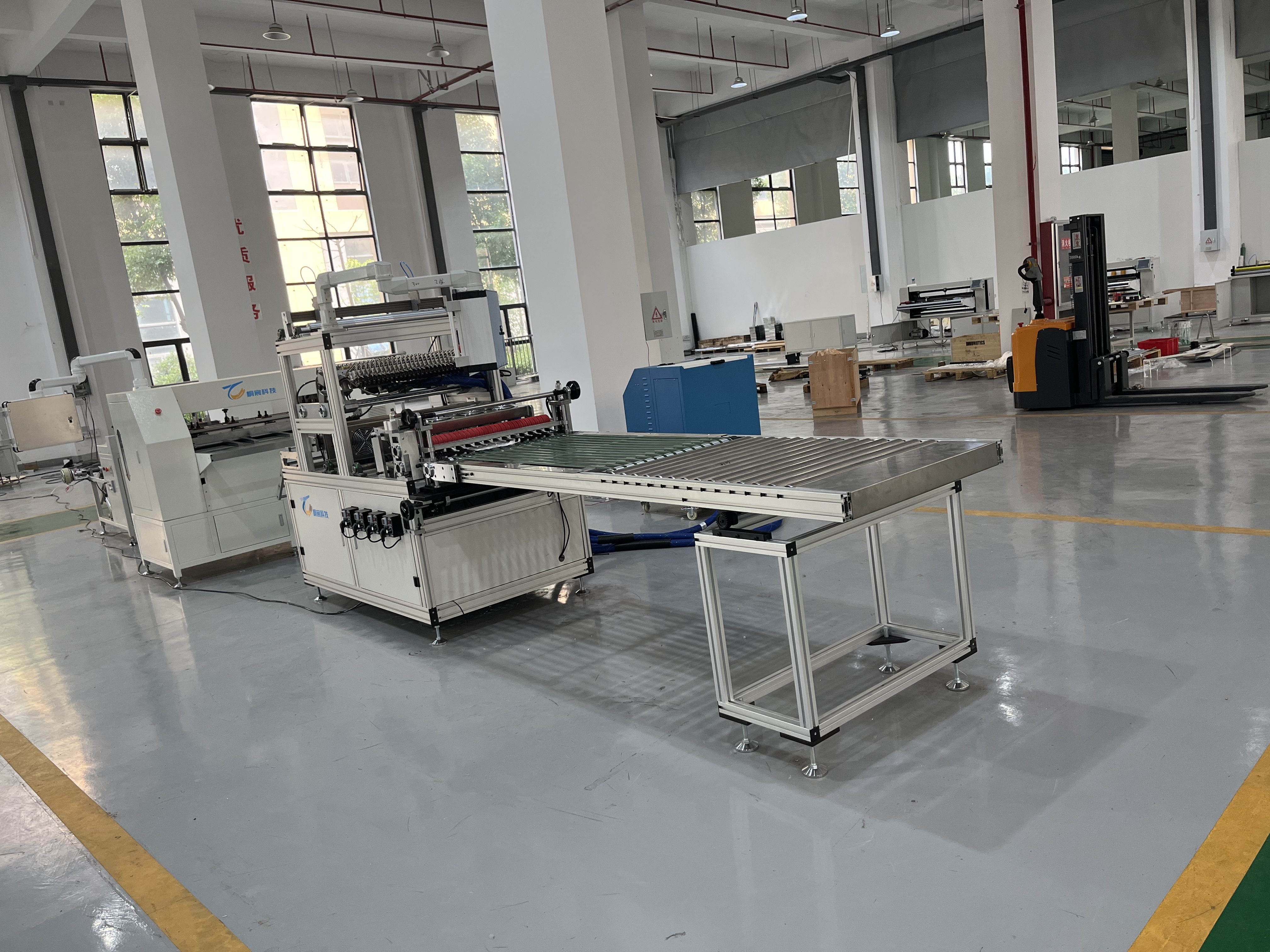 O processo de operação totalmente automático, desde a alimentação automática, a dobragem das bordas até a colagem e prensagem, é concluído de uma só vez sem muita intervenção manual.